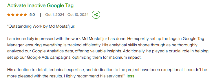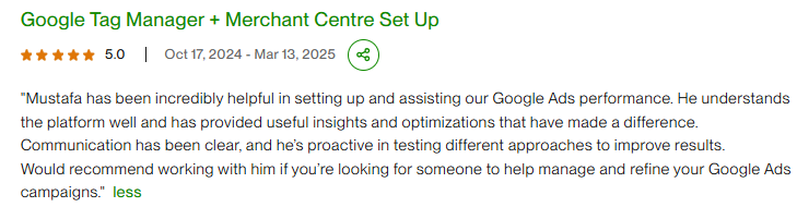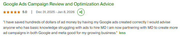 Yes. I set up and audit Google Ads conversion tracking, GA4, Google Tag Manager, and event tracking to ensure clean data.